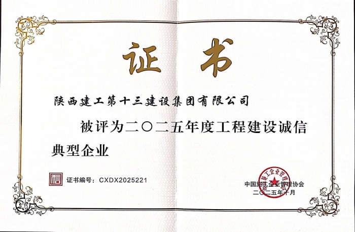 日前,從中國施工企業(yè)管理協會傳來喜訊,集團獲評2025年度工程建設誠信典型企業(yè)。
