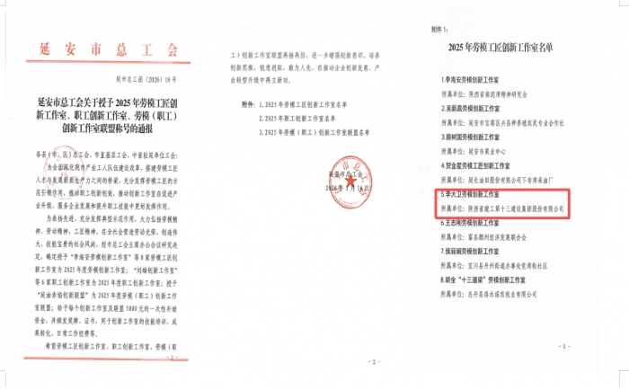 1月16日,李大衛(wèi)勞模創(chuàng)新工作室被延安市總工會(huì)授予2025年勞模工匠創(chuàng)新工作室。